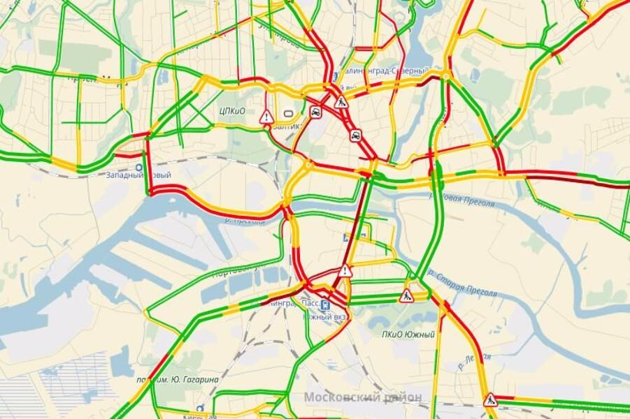 Также пробки наблюдаются на ул. Театральной, ул. Черняховского, ул. Невского, на проспекте Мира, площади Победы и др.