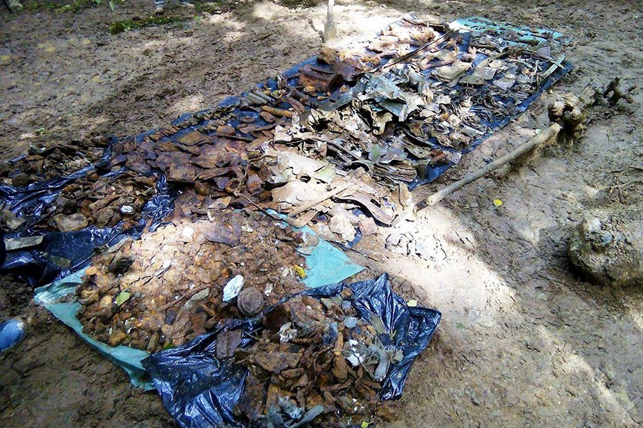 «Мы выехали на место, заложили контрольный шурф и пришли к выводу, что здесь разбился наш советский самолет-штурмовикИл-2311-го авиационной дивизии 956 авиационного полка. В первый день раскопок удалось поднять много фрагментов самолета, части блока двигателя, на котором просматриваются номера, человеческие останки», — рассказал Руслан Хисамов. 10 августа поисковики обнаружили двигатель самолета — ключевую деталь для дальнейшей идентификации имён погибших летчиков.