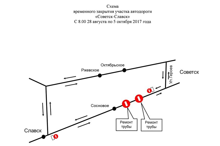 Министерство развития инфраструктуры Калининградской области предупреждает о временном ограничении движения транспорта на километровом отрезке трассы «Советск — Славск», сообщает