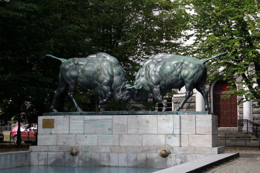 Скульптурная композиция «Борющиеся зубры» работы Августа Гауля датирована 1911 годом. Она является объектом культурного наследия регионального значения.
