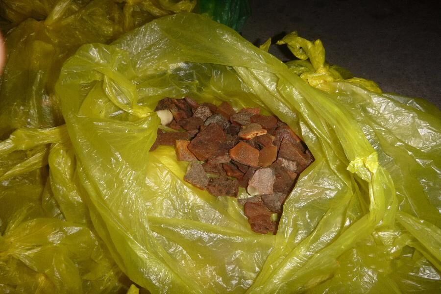 Незадекларированный товар был обнаружен при осмотре автомобиля «Форд», на котором женщина приехала на пункт пропуска. В тайнике находились 35 пакетов с предметами природного происхождения желтого и коричневого цвета различных фракций.
