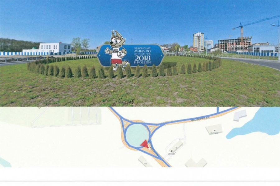 «Конструкция представляет образ талисмана чемпионата: Забивака держит в руках футбольный мяч на фоне официального информационного стенда», — поясняют в администрации. Забиваку установили на разворотном кольце (ул. Тургенева — ул. Окружная).