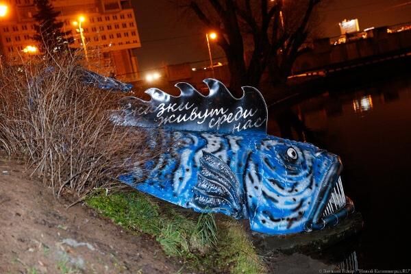 Напомним, в четверг на берегу Нижнего пруда установили огромную голубую рыбу. Скульптуру Калининграду подарила ГК «Гидрокомфорт», в структуру которой входит подрядчик благоустройства набережной пруда «Чистоград ПМК». Главный архитектор Калининграда Вячеслав Генне сказал, что надеется, что скульптуру уберут. Губернатор области Антон Алиханов также оказался не в восторге.