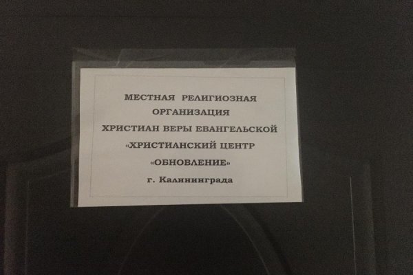 Центральный районный суд Калининграда оштрафовал религиозную организацию «Христианский центр Обновление» на 30 тысяч рублей за отсутствие вывески с названием на входной двери. Организацию уличили в нарушении законодательства о свободе совести, свободе вероисповедания и о религиозных объединениях (статья 5.26 КоАП РФ, речь в данному случае идет о 3 части этой статьи).