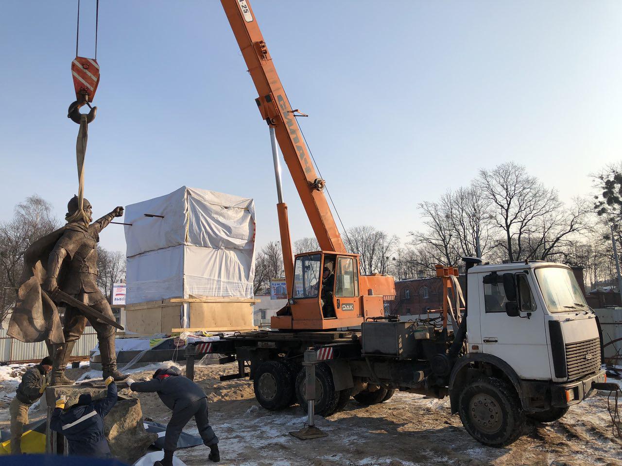 В Калининграде посреди кольца на площади Василевского рабочие начали устанавливать памятник князю Александру Невскому, передаёт с места корреспондент «Нового Калининграда».