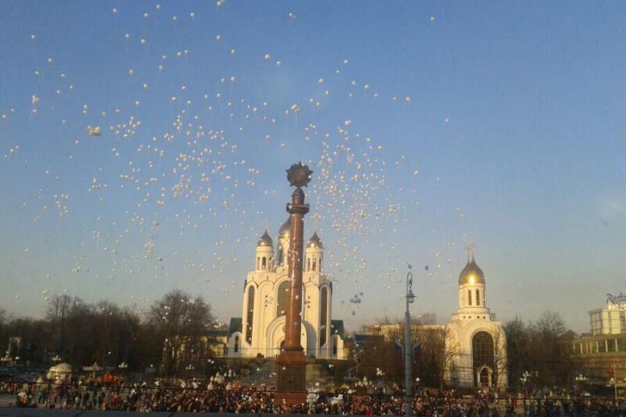 Жители Калининграда в среду вечером вышли на площадь Победы и выпустили в небо сотни белых шаров в память о жертвах трагедии в Кемерово, передаёт корреспондент «Нового Калининграда». По его словам, на площади собралось около 300 человек. Подобные акции в среду проходят по всей России, пишет ТАСС.