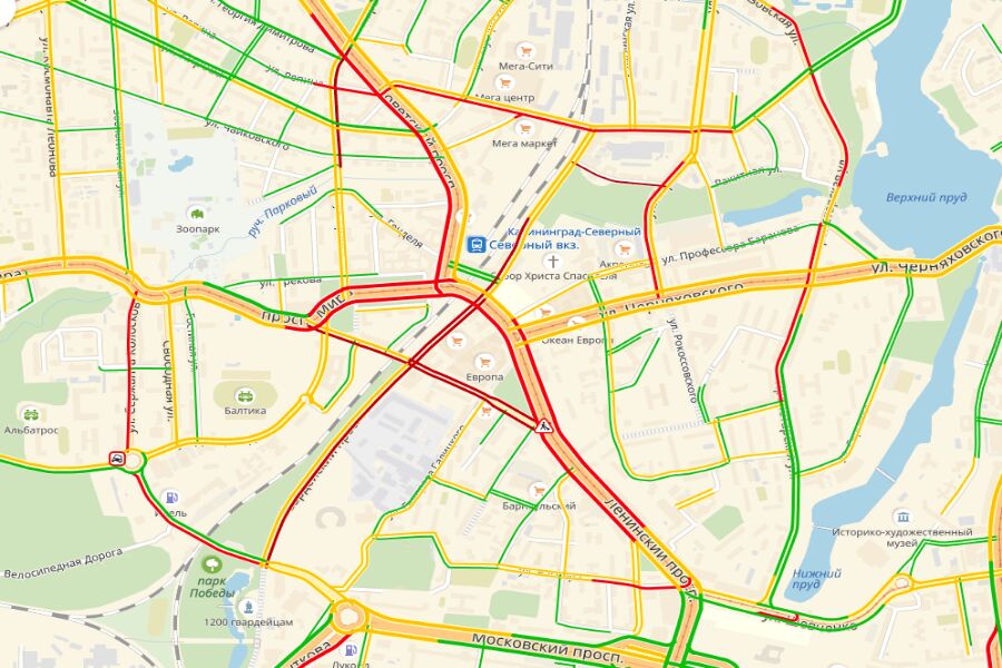 В Калининграде на Ленинском проспекте начались работы по ремонту дорожного покрытия, передаёт корреспондент «Нового Калининграда». Дорога частично перекрыта в районе перекрёстка с ул. Театральной. Согласно сервису «Яндекс. Пробки», серьёзно затруднено автомобильное движение в сторону пл. Победы на пр. Мира, ул. Театральной, Советском пр, Ленинском пр. и Гвардейском пр. Средняя скорость автомобилей на отдельных участках не превышает 3 км/ч.