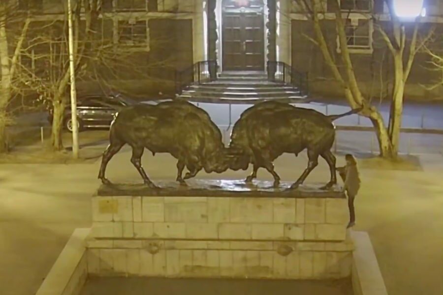 Напомним, калининградская «традиция» красить гениталии «Быкам» в канун Пасхи была продолжена в ночь на минувшее воскресенье. Участники акции попали на запись камер видеонаблюдения, девушка, которая держала в руках баллончик с краской, была задержана.