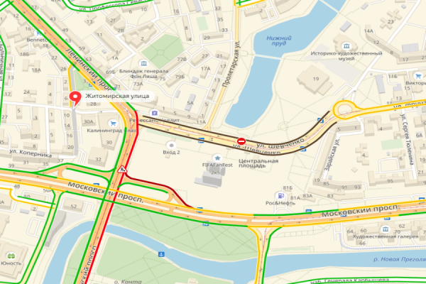 — ул. Житомирская от Ленинского проспекта до ул. Коперника.
