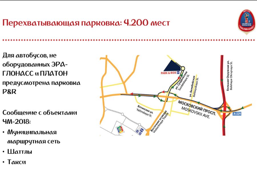 Перехватывающая парковка на ул. Суздальской в Калининграде для болельщиков ЧМ-2018 оказалась не востребована в день первого матча на стадионе «Калининград». Об этом в среду во время брифинга сообщил вице-премьер областного правительства Александр Рольбинов, передает корреспондент «Нового Калининграда».