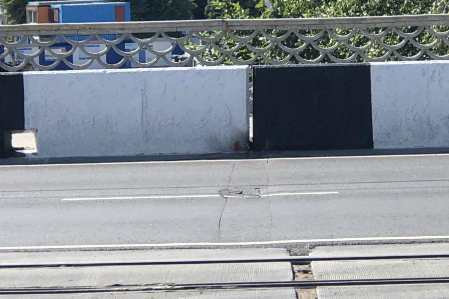 На эстакадном мосту в областном центре, отремонтированном минувшей весной перед