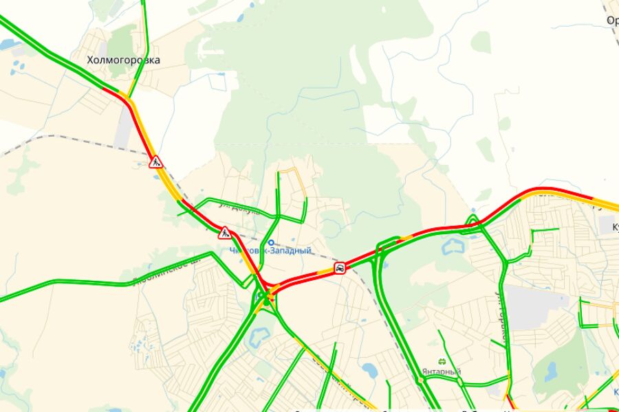 По словам автомобилистов, дорожный затор начинается от Холмогоровки и путь до Калининграда занимает около 1,5 часов. На участке ведутся работы по ремонту дороги.