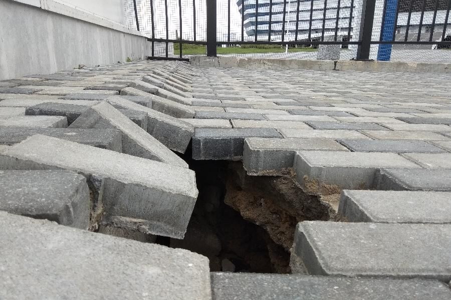 Также напомним, ранее на острове неоднократно фиксировались провалы плитки, в том числе глубокие. Также проседание грунта произошло на тротуаре у Высокого моста.