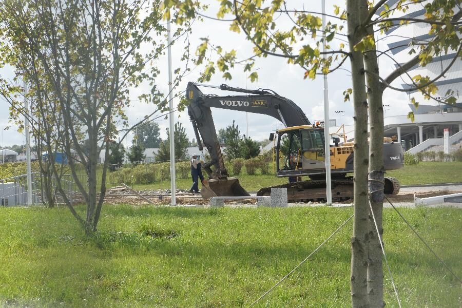 Отметим, в настоящее время один из провалов у одного из входов на территорию арены засыпан песком. Сверху неаккуратно уложили плитку.