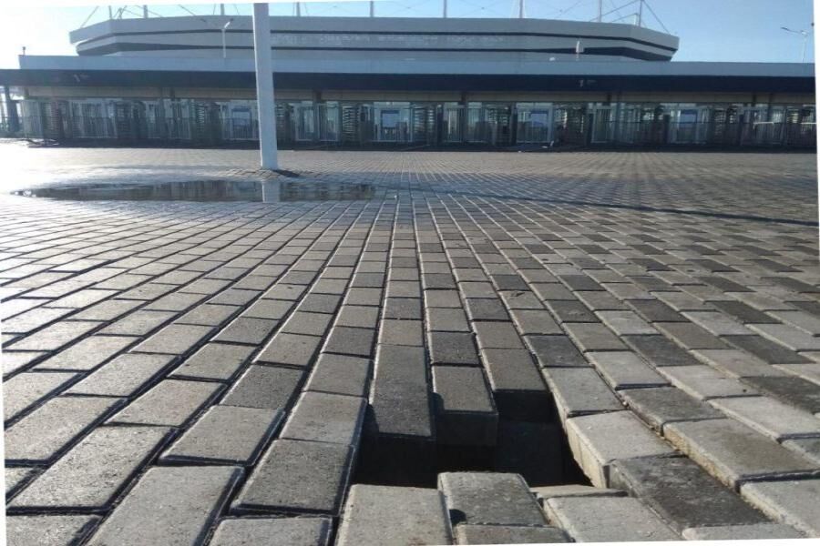 Напомним, ранее похожий провал появился у другого входа на территорию арены. Его заделали, но он снова образовался. Кроме этого, в конце августа федеральное госпредприятие