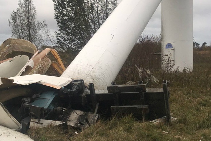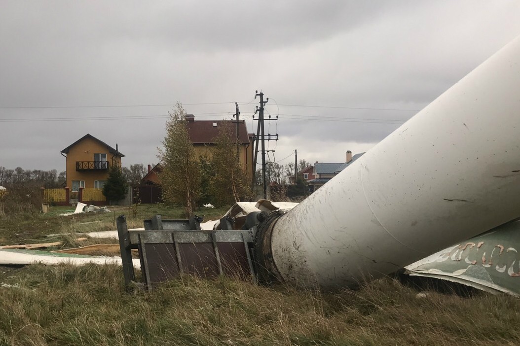 По словам местных жителей, ЧП случилось около полудня в среду, 24 октября. Сначала у ветряка начали отваливаться лопасти, а потом согнулась и рухнула сама опора.