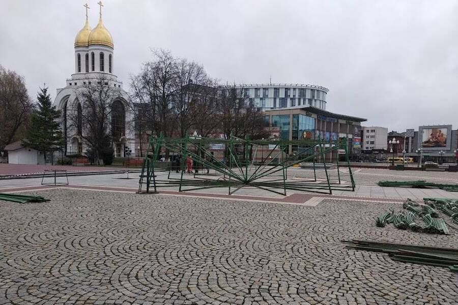 На площади Победы в областном центре начали собирать новогоднюю ель. Об этом калининградцы в понедельник пишут в социальных сетях. На площади появился каркас основания главного городского новогоднего символа.
