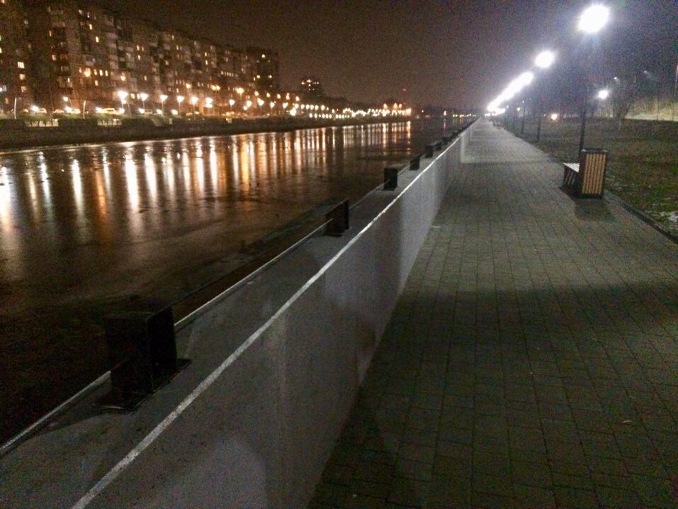 На протяженном участке новой набережной Карбышева демонтированы деревянные поручни с железобетонного ограждения. Об этом передает корреспондент «Нового Калининграда».
