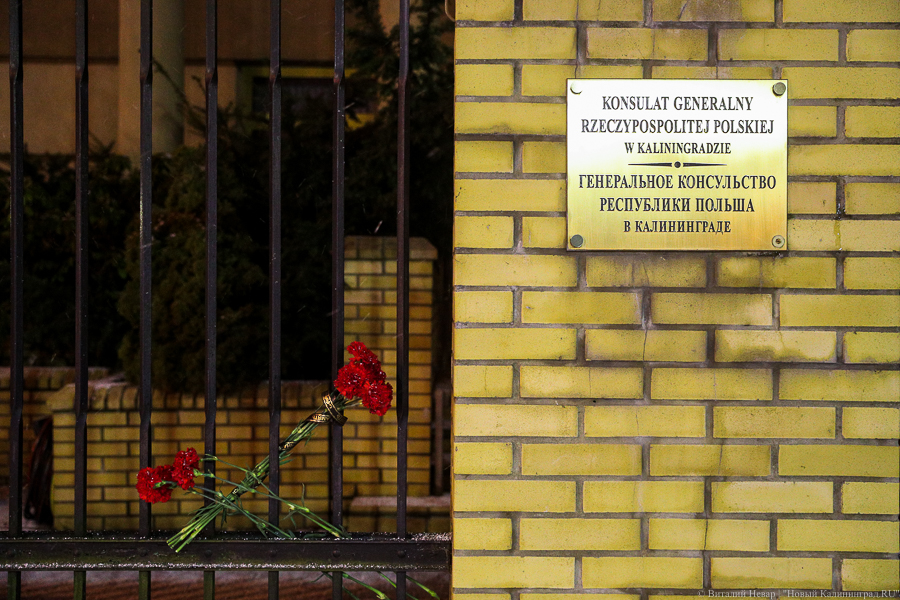 На снимках — цветы у консульства Польши в Калининграде. Фото — Виталий Невар, «Новый Калининград»