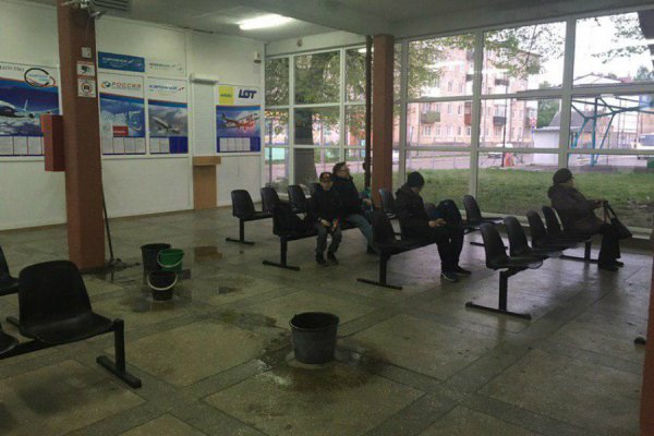 В Советске крыша здания городского автовокзала прохудилась настолько, что во время дождя сотрудникам предприятия приходится ставить в зоне ожидания ведра.