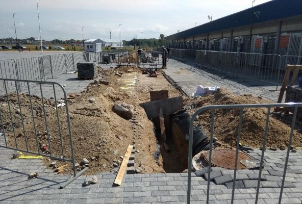 В работах задействованы десятки человек. Они полностью сняли плитку с участка пешеходной дорожки, где ранее наблюдались «волны». Ремонт также делают возле одной из входных групп на территорию стадиона.