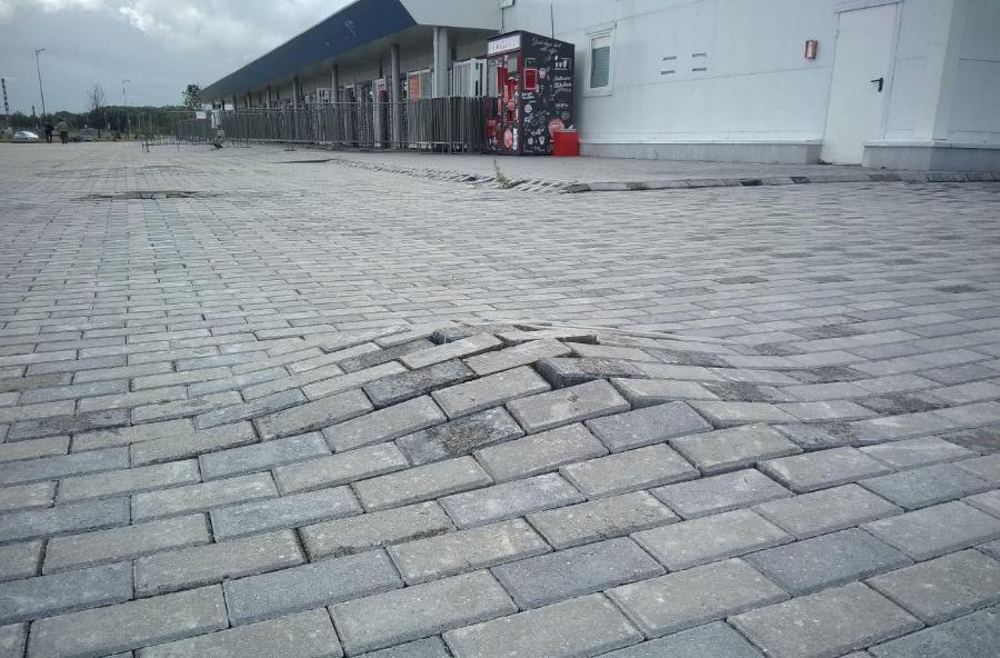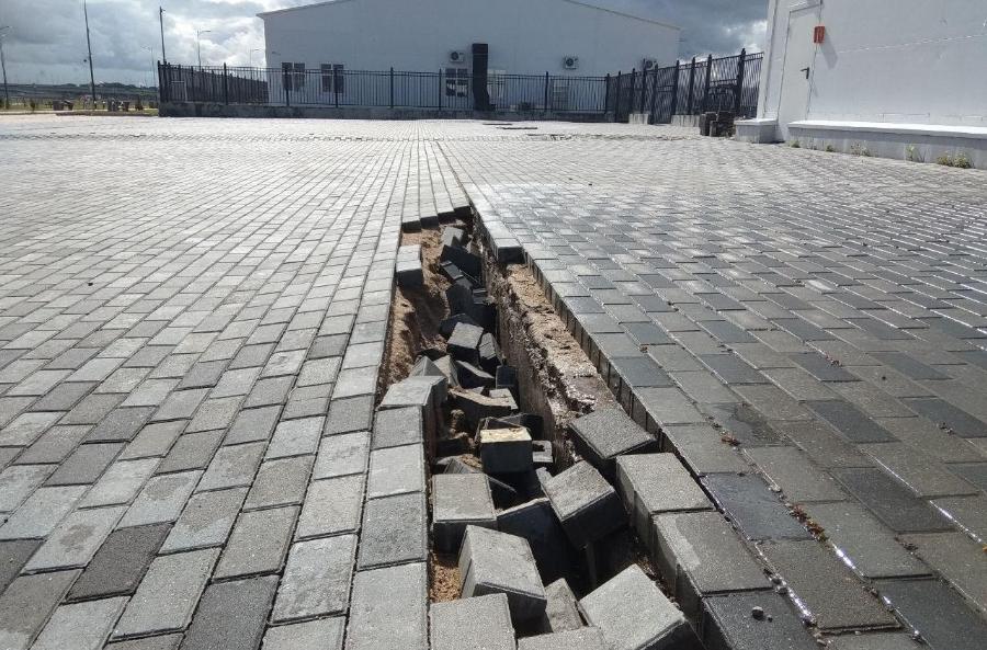 В Калининграде на острове Октябрьском напротив нового стадиона подтопило часть автомобильной дороги и тротуар. В местах, где недавно перекладывали плитку, снова появляются провалы, передает в четверг, 4 июля, корреспондент «Нового Калининграда».