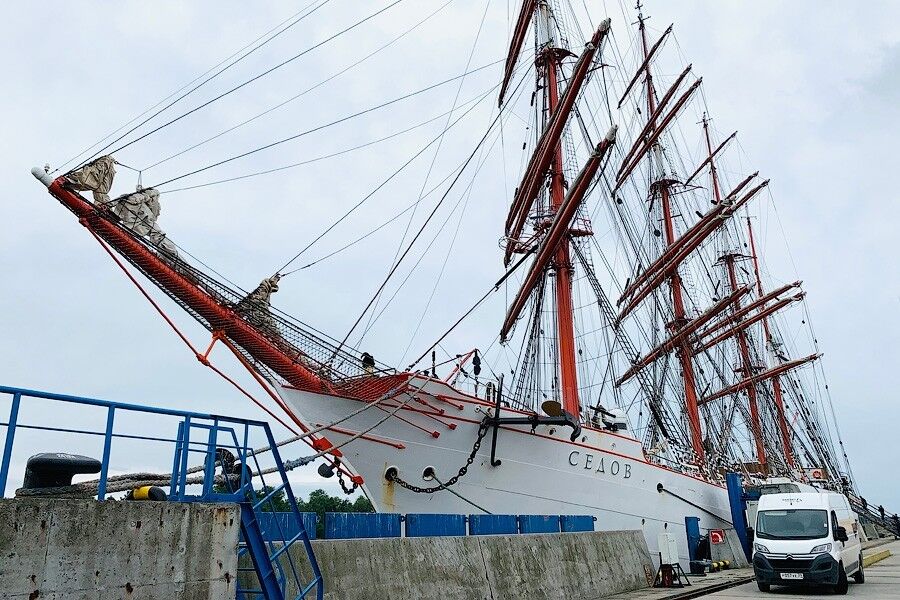 Барк «Седов», около двух суток находившийся на рейде у входа в Калининградский морской судоходный канал, утром в субботу, 6 июля, смог пришвартоваться в Балтийске.