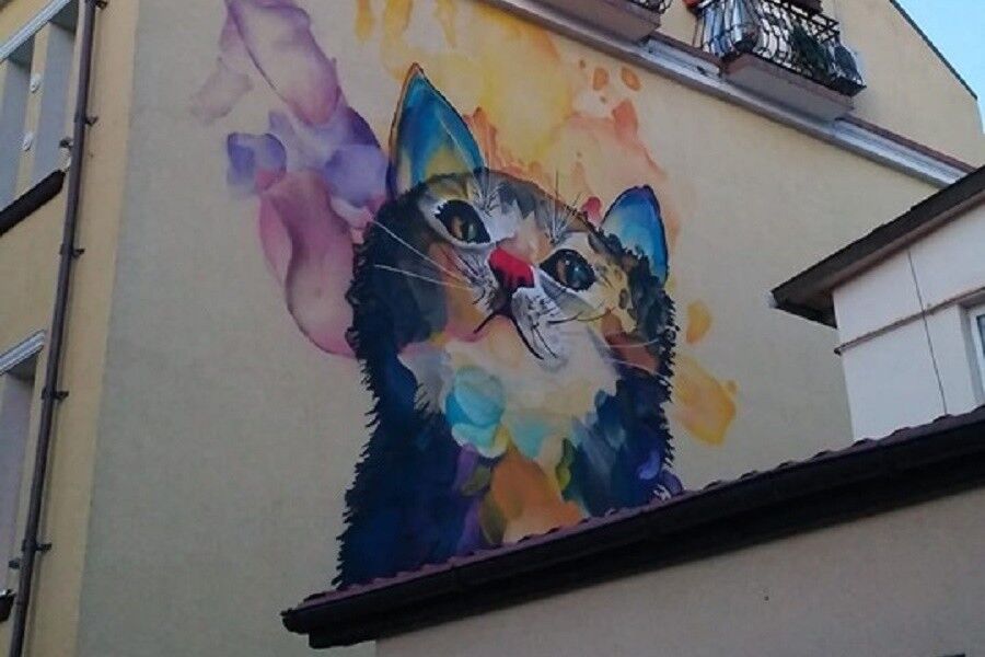 В Зеленоградске на фасаде дома появился разноцветный кот (фото)