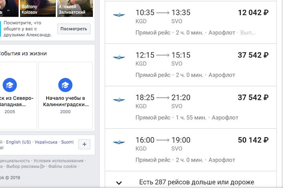 В своем Facebook* депутат опубликовал пост, к которому приложил скриншот с ценами на авиабилеты на 8 июля. Стоимость перелета до Москвы начиналась с 12 042 руб. и доходила до 50 142 руб.