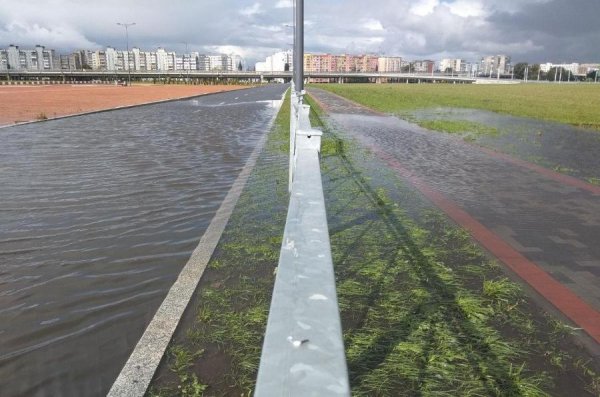 В Калининграде на острове Октябрьском из-за продолжительных дождей подтопило дороги, тротуары и территорию у стадиона, передает в среду, 18 сентября, корреспондент «Нового Калининграда».