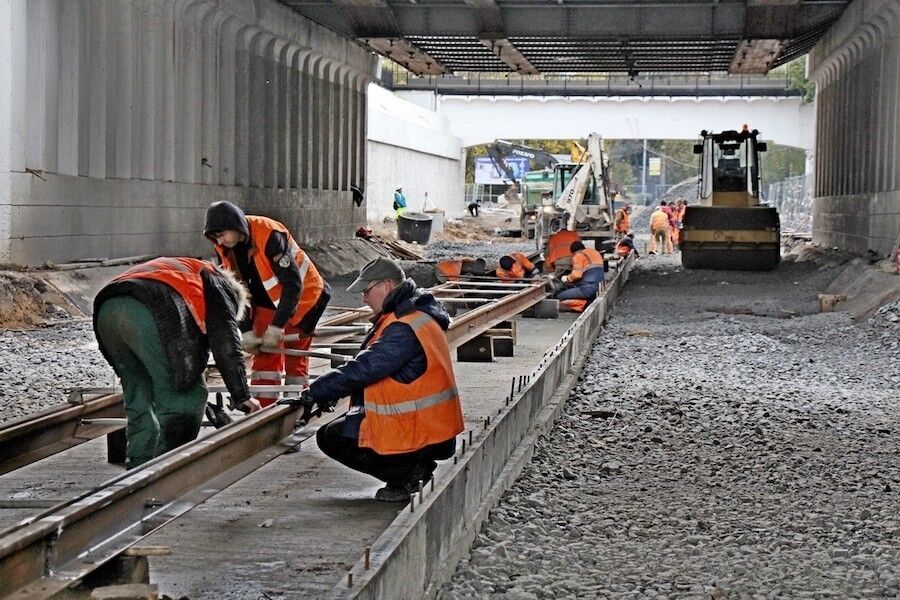 «Одновременно рабочие заливают бетоном очередной участок путей. Следом за путейцами дорожники ведут отсыпку щебёночного основания под слои асфальтобетона на будущей проезжей части. На этой неделе планируют начать устанавливать бортовой камень, начнут строительство тротуара по чётной стороне улицы», — говорится в сообщении.