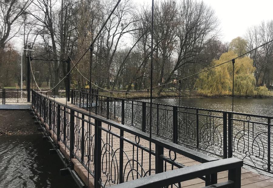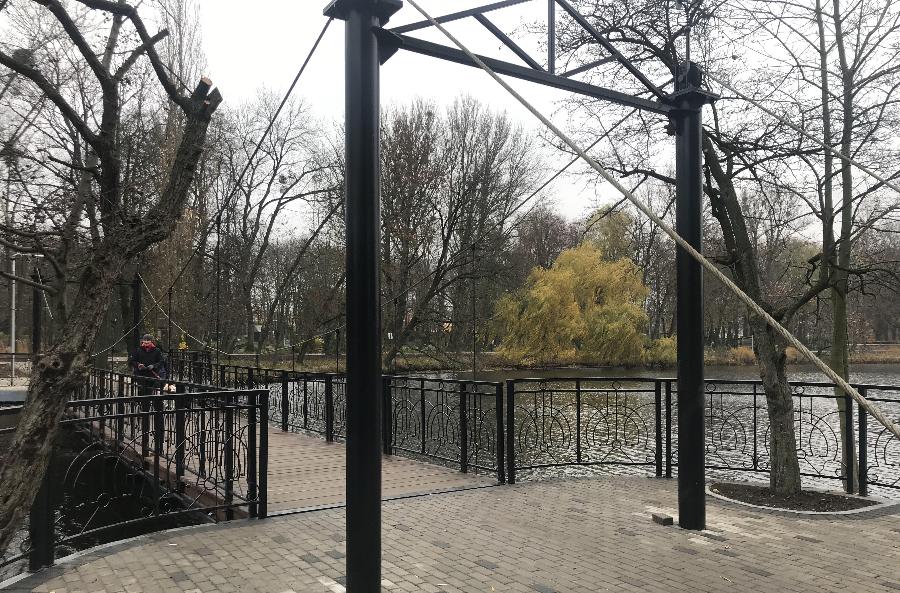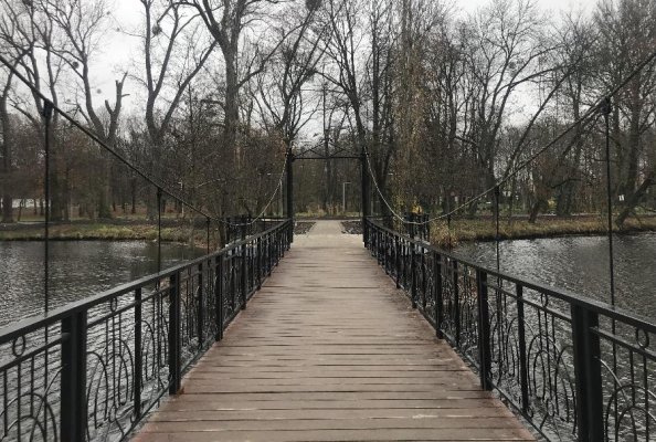 В Южном парке Калининграда для пешеходов открыли новый мост, который построили на месте старого при благоустройстве прилегающей территории. Как передает корреспондент «Нового Калининграда», мост находится возле стадиона «Локомотив» и подсвечивается в вечернее время.