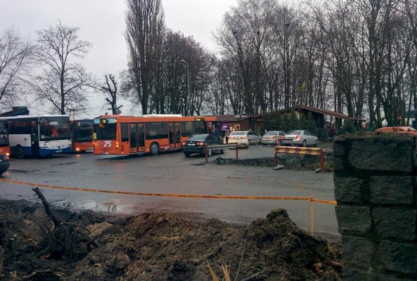 По его словам, новую дорогу начали строить через парковку, где останавливается и разворачивается общественный транспорт. «Поскольку размер кольца (парковочного пространства) резко уменьшился, а там кроме автобусов останавливаются учебные автомобили, возникают разборки. Например, сегодня 20 минут не мог выехать 11 автобус. Потасовка чуть не дошла до рукоприкладства», — рассказал очевидец.