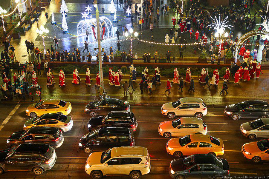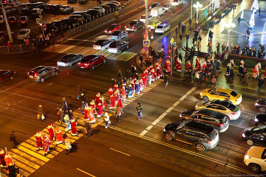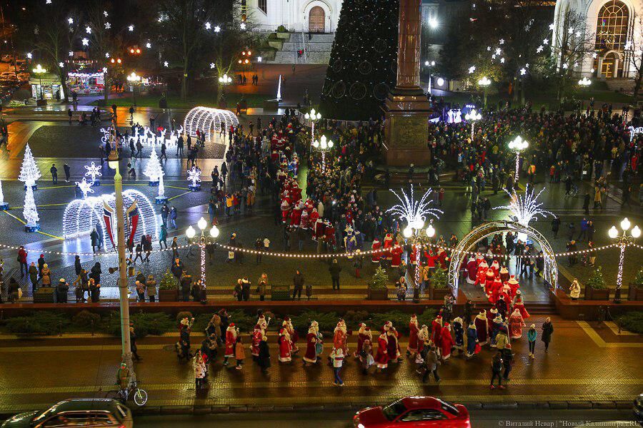 В Калининграде по площади Победы прошествовали несколько десятков Дедов Морозов. Как сообщает пресс-служба горадминистрации, наряженных в костюмы на мероприятии собралась почти сотня.