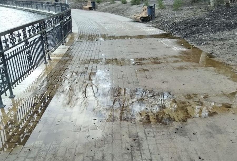 Мужчина обратил внимание и на другие недостатки, в том числе протекающую крышу новой беседки и подтопленную пешеходную дорожку.