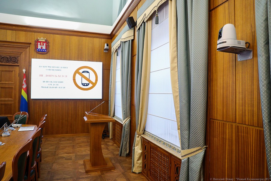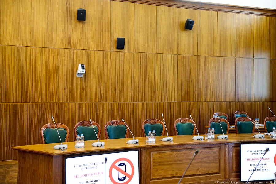 Во вторник, 18 февраля, правительство Калининградской области впервые провело заседание в зале, на ремонт которого в 2019 году было выделено более 22 млн. рублей (это больше, чем было выделено на ремонт фасада здания на ул. Дм. Донского, 1). Согласно проектной документации, речь шла об общестроительных работах (в том числе укладке нового паркета), замене пожарной и вентиляционной систем, установке нового аудио- и видеооборудования. Кроме этого, в документации фигурировал новый П-образный стол из клена. Ремонт также касался прилегающего небольшого операторского помещения.