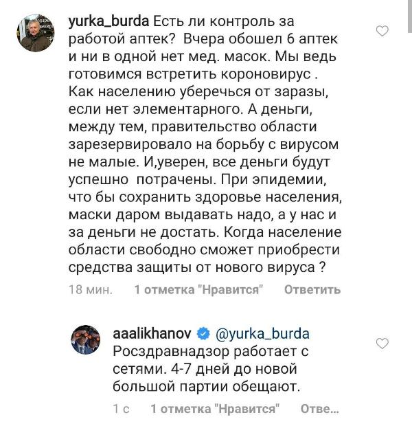 Губернатор Антон Алиханов написал у себя в «Инстагаме», что Роспотребнадзор ведет переговоры по поводу масок и новая поставка ожидается через 4-7 дней.