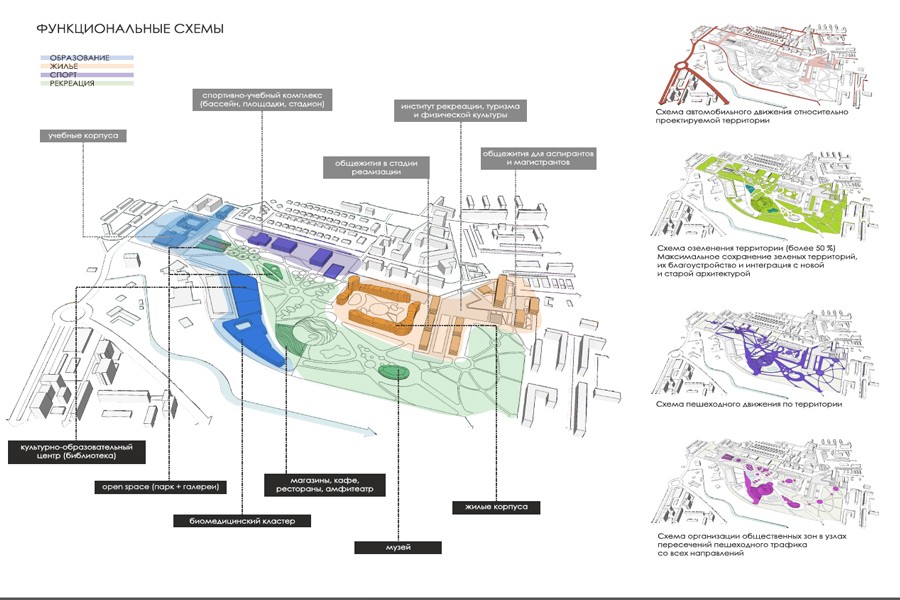Как уточнили в БФУ, общая площадь застройки составит 33 га, из них 4,3 га — территория, которую благоустроят за границами выделенного участка. Планируется строительство биомедицинского кластера, культурного блока, лабораторий, музеев и жилых корпусов. Будет благоустроен парк. Создатели также предполагают наличие на территории магазинов, ресторанов и амфитеатра.