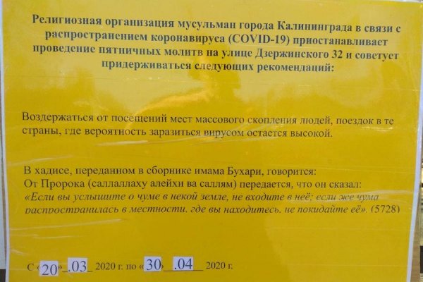 Как сообщил корреспонденту «Нового Калининграда» очевидец, соответствующая информационная табличка размещена на заборе у музея «Фридландские ворота». Верующим советуют также воздержаться от мест массового скопления людей и поездок в страны, где высока вероятность заразиться.