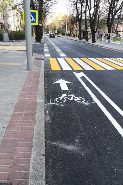 На отремонтированной ул. Комсомольской нанесли дорожную разметку. На ней появилась велодорожка, которую решили совместить с проезжей частью, сообщает администрация Калининграда в соцсетях.