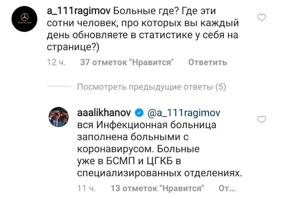 «Вся инфекционная больница заполнена больными с коронавирусом. Больные уже в БСМП и ЦГКБ в специализированных отделениях», — написал чиновник, отвечая на соответствующий вопрос пользователя.