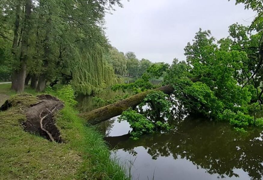 В Калининграде в Южном парке в озеро упал большой дуб. Об этом в понедельник, 8 июня, сообщили на официальной странице городской администрации в Facebook*.