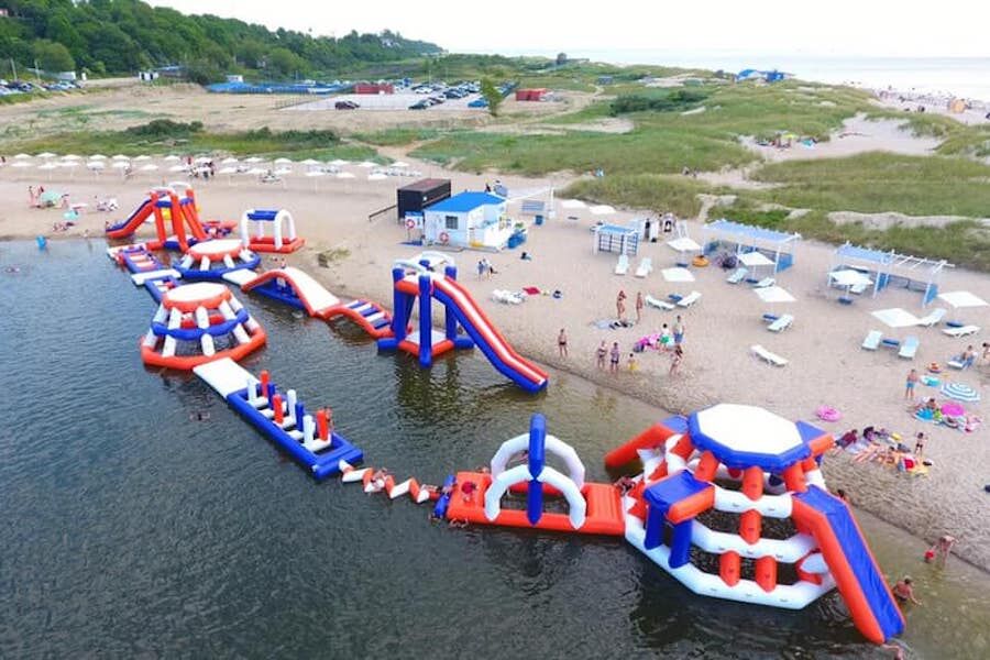 В Янтарном на озере рядом с пляжем у шахты «Анна» установили надувной аквапарк. Об этом в своем «Фейсбуке*» сообщил глава местной администрации Алексей Заливатский.