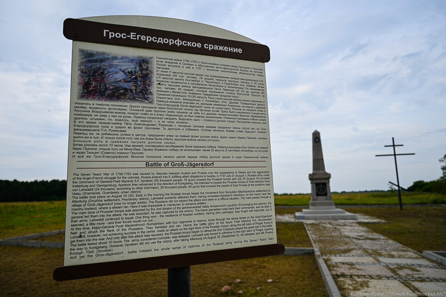 Отмечается также, что в прошлом году началась работа по приданию территории Гросс-Егерсдорфского поля статуса официального памятника — «достопримечательного места». В октябре 2019 года приказом ведомства основной участок поля, площадью более 700 гектаров вместе с местом установки памятного мемориала был внесен в перечень объектов, обладающих признаками объекта культурного наследия. Этот статус предусматривает запрет на проведение земляных, строительных, хозяйственных работ.