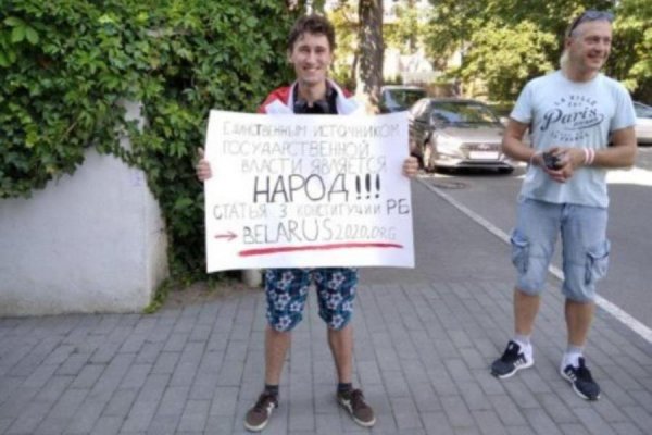 Артур Парфенов – гражданин Белоруссии, но живет в Калининграде. Он написал на плакате: «Единственным источником государственной власти является народ! Статья 3 Конституции РБ.». Также на ватмане калининградец указал адрес ссылки на онлайн-платформы «Голос» — Belarus2020.org.