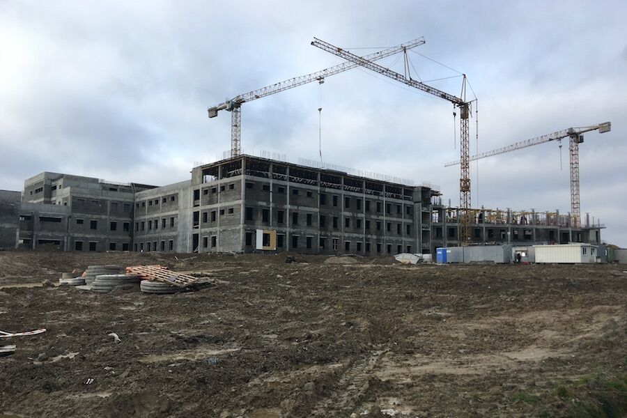 На стройке калининградского онкоцентра есть «неохваченный фронт работ», людей на стройке не хватает. Об этом журналистам во время рабочего выезда в понедельник, 26 октября, сообщил министр строительства региона Сергей Черномаз, передает корреспондент «Нового Калининграда».