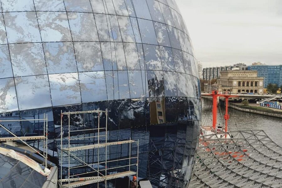 На строящемся объекте Музея Мирового океана «Планета Океан» завершилась установка стекол. Об этом сообщается на странице музея в «Фейсбуке*».