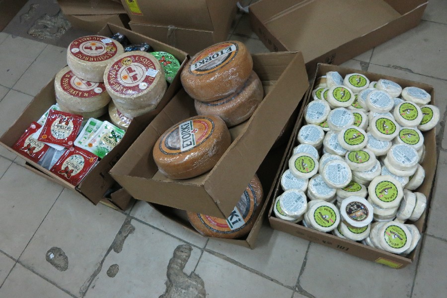 На погранпереходе в Чернышевском таможенники остановили грузовой автомобиль, в котором, согласно документам, перевозилось 20 тонн отечественной замороженной свинины и мясного шпика. В части коробок из-под свинины сотрудники таможни во время досмотра обнаружили сыры и масло французского, голландского, эстонского и финляндского производства — всего около 6 тонн продукции, более чем 15 наименований.