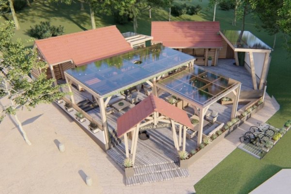 Кафе из дерева и стекла, с установкой элементов озеленения планируется разместить в районе «Фестивальной площади» (существующей парковки) на месте одноимённого существующего заведения вдоль выхода к Балтийскому морю с парковки.