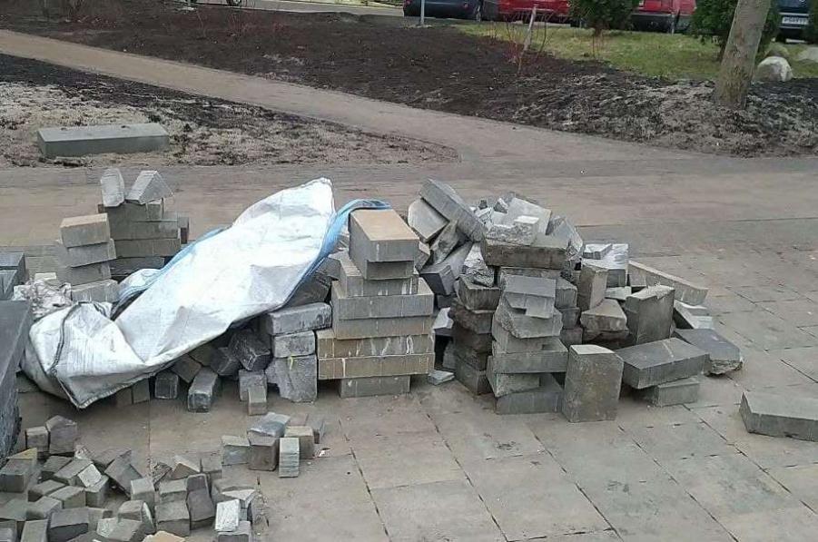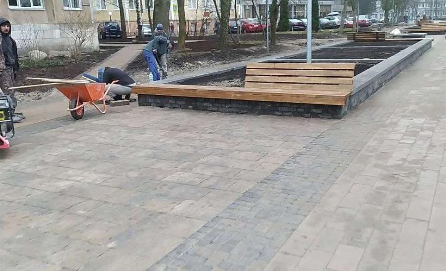 В настоящее время рабочие перекладывают тротуарную плитку. Остается закрытым и недоделанным новый спуск со стороны ул. Черняховского. Размещенная возле танка детская площадка остается огороженной.